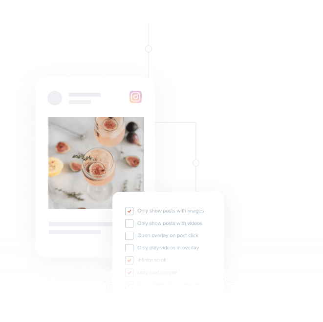 Juicer’s dashboard is built for ease of use. Control all of your curated social media content, add multiple sources, as well as filter and moderate what gets published on your social feed.