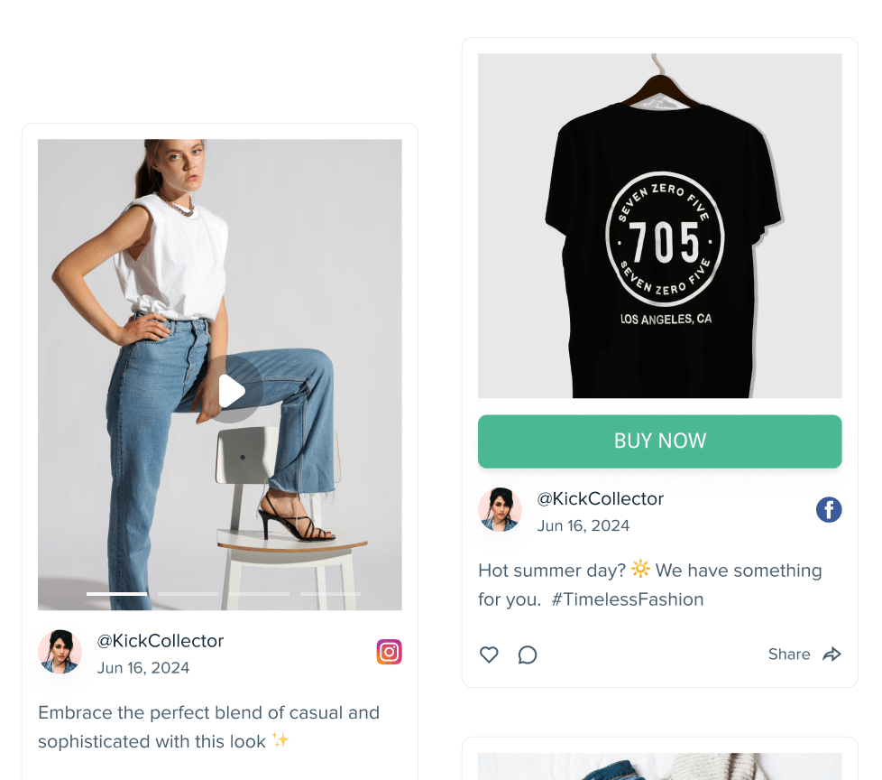 Juicer automatically syncs your connected social media accounts at regular intervals. Any new posts, customer content, or updates you share on platforms like Instagram, Facebook, or TikTok will automatically appear on your website without the need for manual updates.
