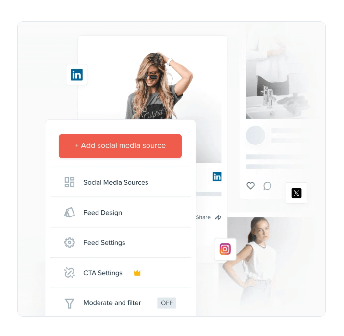 Moderate posts manually before they are published on your website to fully control the content of your website. This is especially handy when displaying user-generated content or hashtag feed content, where you’ll want to ensure everything is up to your brand’s standards before it’s live on your website.